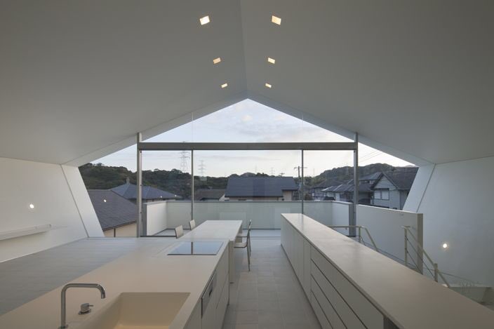 五角形の開口が目を惹く、一分の隙もない建築家住宅。