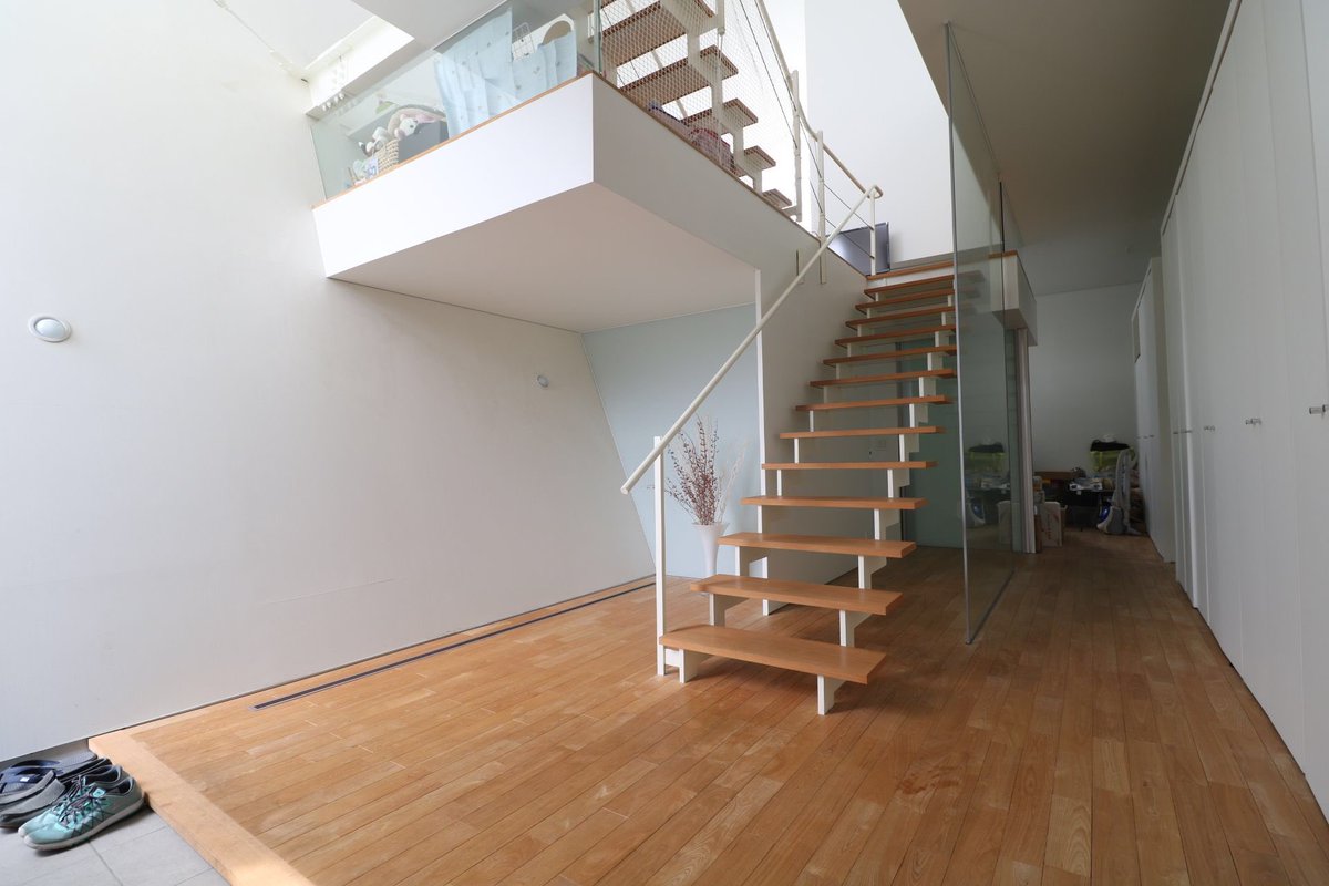 近未来的な外観はもちろん、白で統一したリビングは美術館も顔負けのスタイリッシュさ。