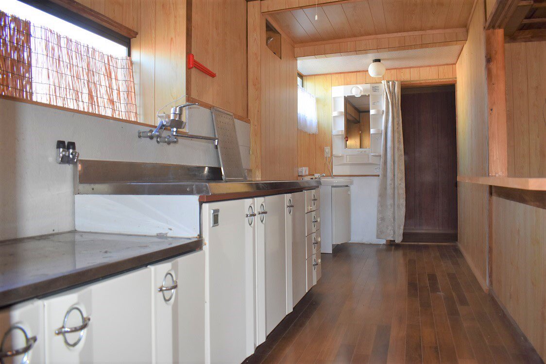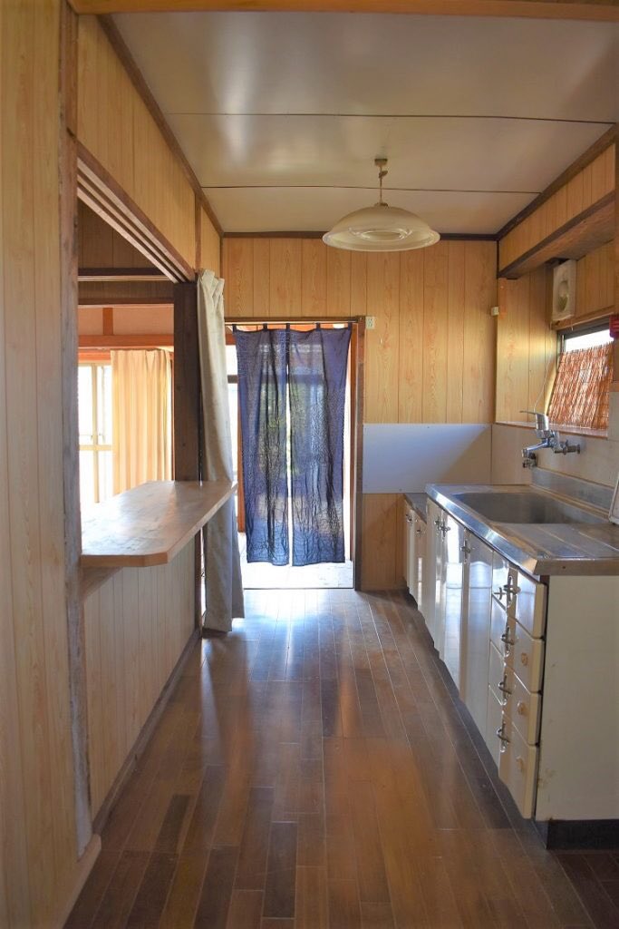 台所は背面カウンター仕様。いっそ好みの色にリペイントしたい。
