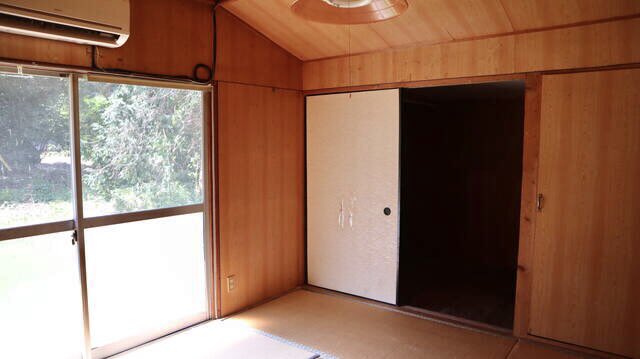 敷地ひろびろ平家物件。ぱっと見は冴えないけど、石場建てっぽい基礎が可能性を感じるし、合板であふれた室内も化粧を落とせば激変しそう。何より抜け感のある気持ちよいロケーションが最大の魅力。価格もお手頃!
