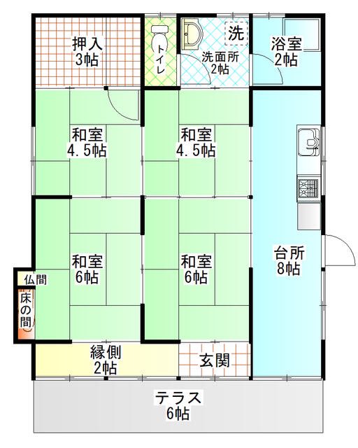 間取りはこんな感じ。台所の縦横比とか押し入れのサイズ感とかいろいろ不思議。