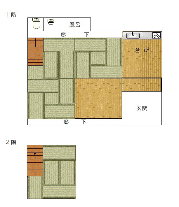 間取りはこんな感じ。平家っぽく見えて実は2階建です。