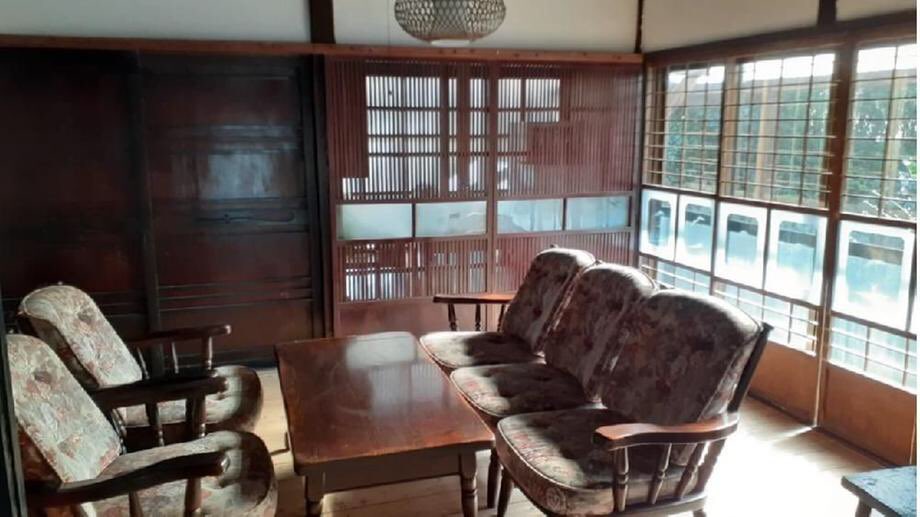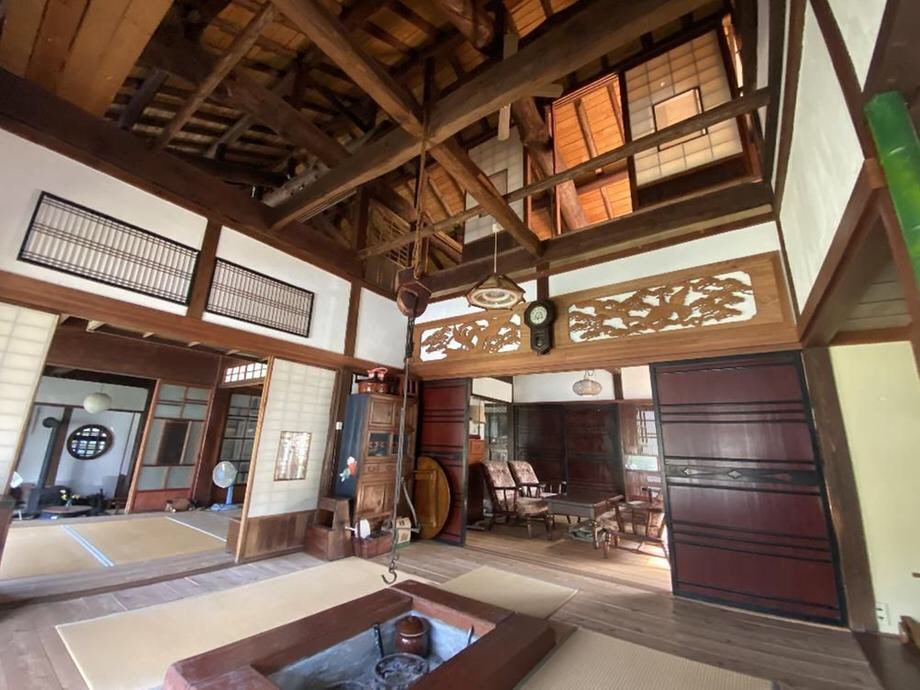 築100年超えの本格古民家。囲炉裏とか木製の建具とか土間とか昔の暮らしを完全再現しようという気概が感じられる好物件。吹き抜けの空間は気持ちいいし土間から見る座敷の景色なんて、いとドラマチック。良き。