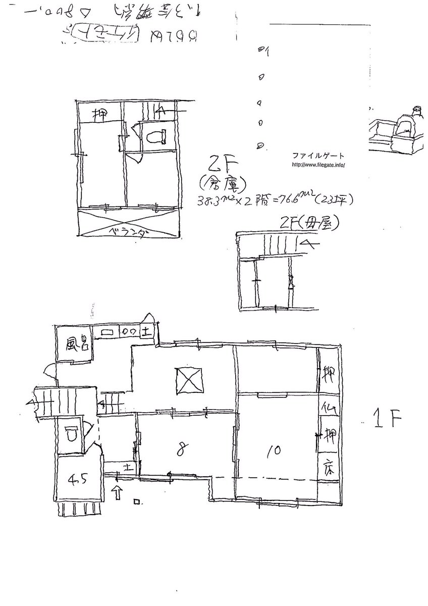 山あいにある格安古民家物件。築70年と古いけど、細かく見ていけばまだまだ住めそうだし古さが逆に味わい深い。特に台所の瞬間湯沸かし器なんて昭和感丸出しで懐かしさしかないし、間取りが手書きなのも好印象。