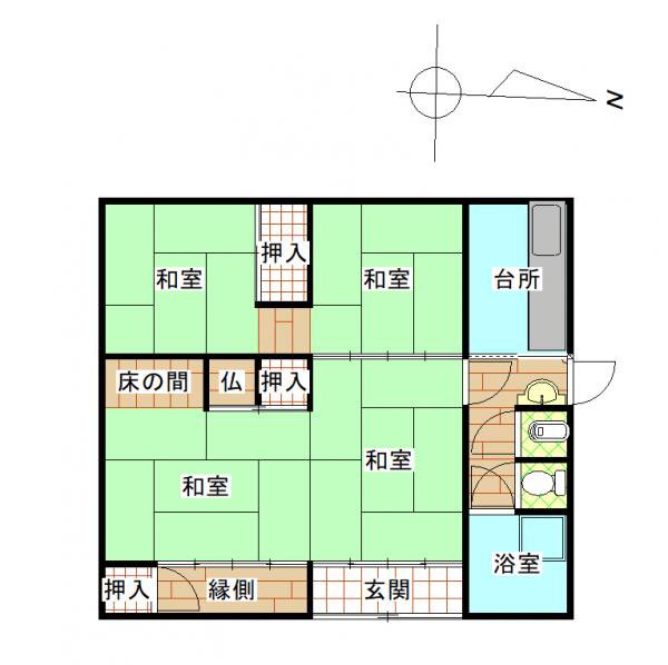 間取りはこんな感じ。台所が狭いのでどうにかしたいけど水まわりが一箇所にまとまってるのは良き。