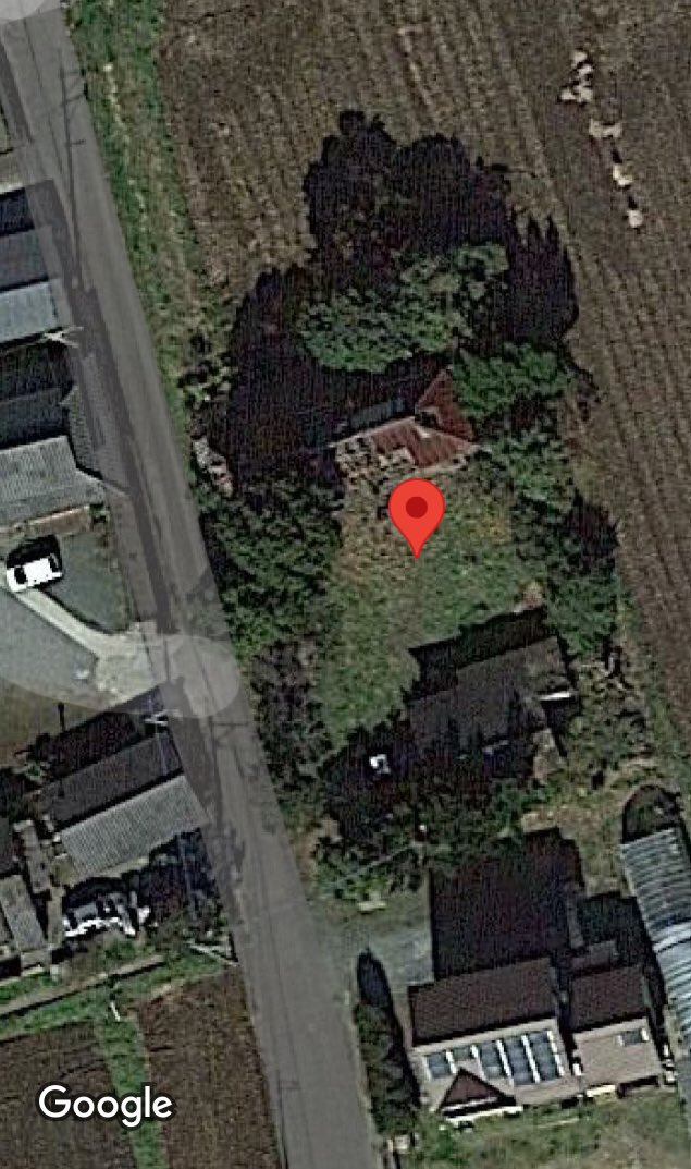 詳細不明のボロ家物件。カンヅメ屋根のトタンが剥がれて状態が不安だけど、中の茅葺きが生きてれば復活の余地はありそう。土地はかなり広いので離れの納屋でソロキャンプしながら母屋は気長にセルフリノベが吉。