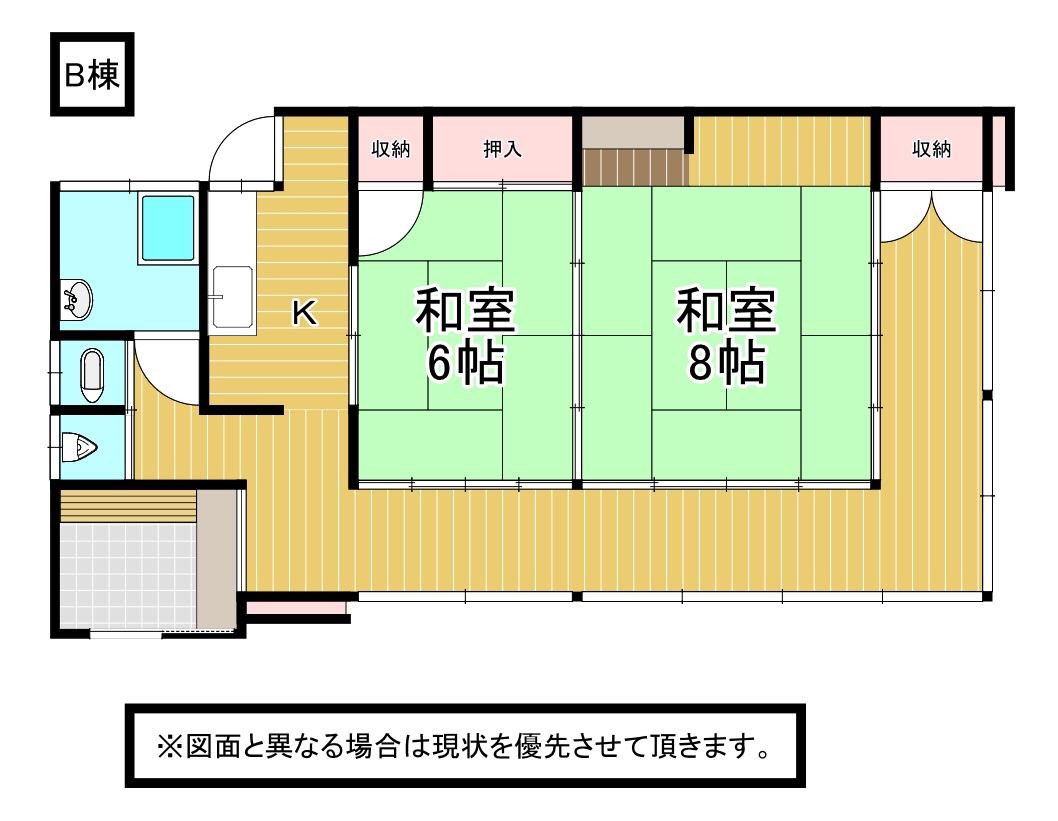 母屋の間取りはこんな感じ、左右独立型なのでお客様が来ても安心。