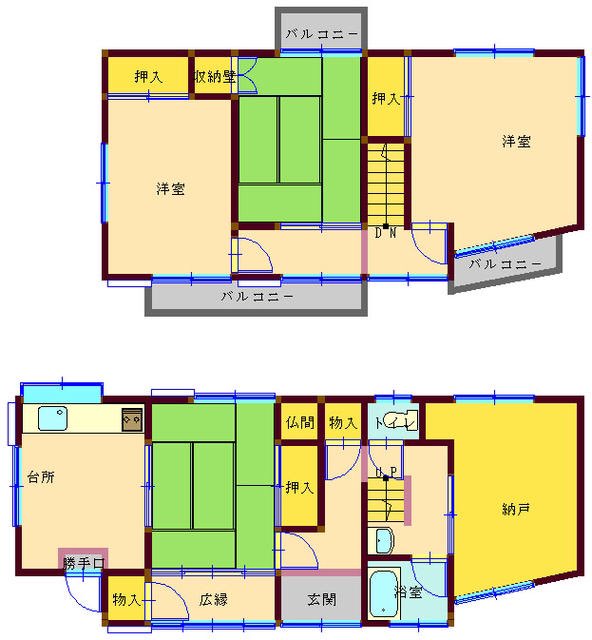 間取りはこんな感じ。2階の3部屋がユーティリティ高そう。