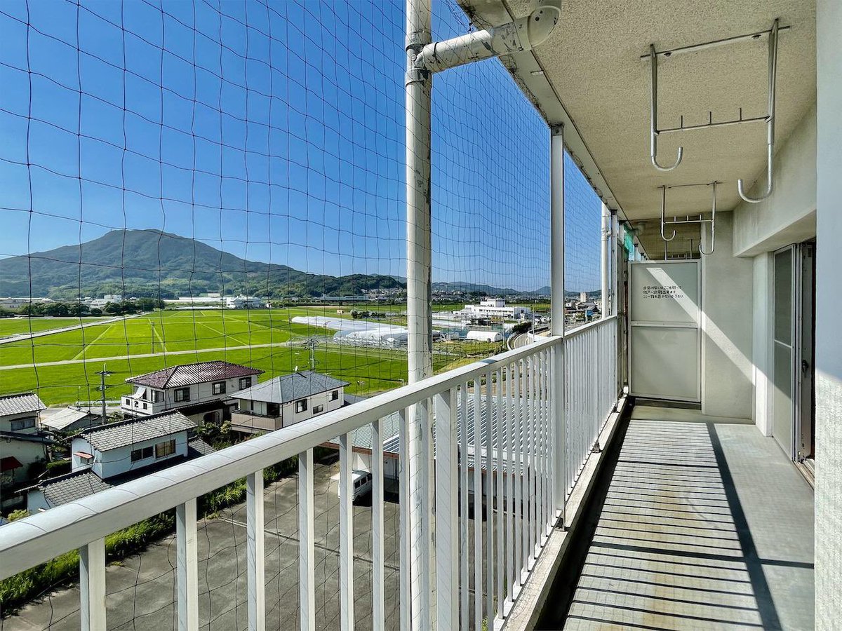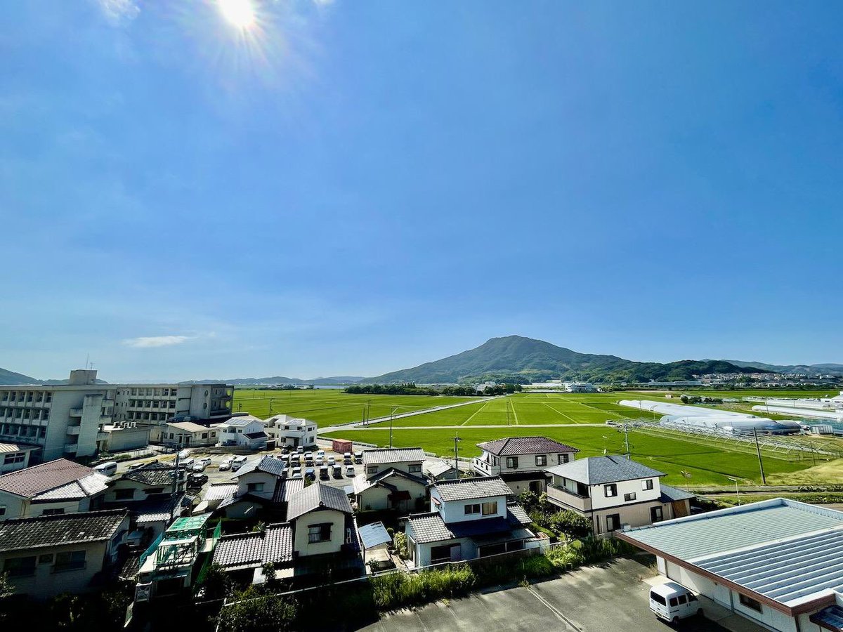 気持ちのよい陽光が注ぐ広めのマンション物件。室内もそれなりに良いのだけど圧巻なのは窓からの風景。青い空と田んぼが見渡せるし夕暮れのマジックアワーはプライスレス。リモートワークにもオススメです。