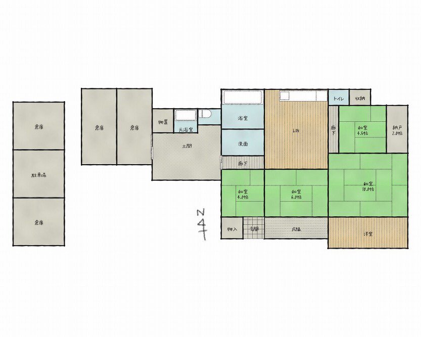 母屋とは別に、物置と畜舎と畑あり。と書いてあるが、これが物置だとしたら畜舎は奥か?